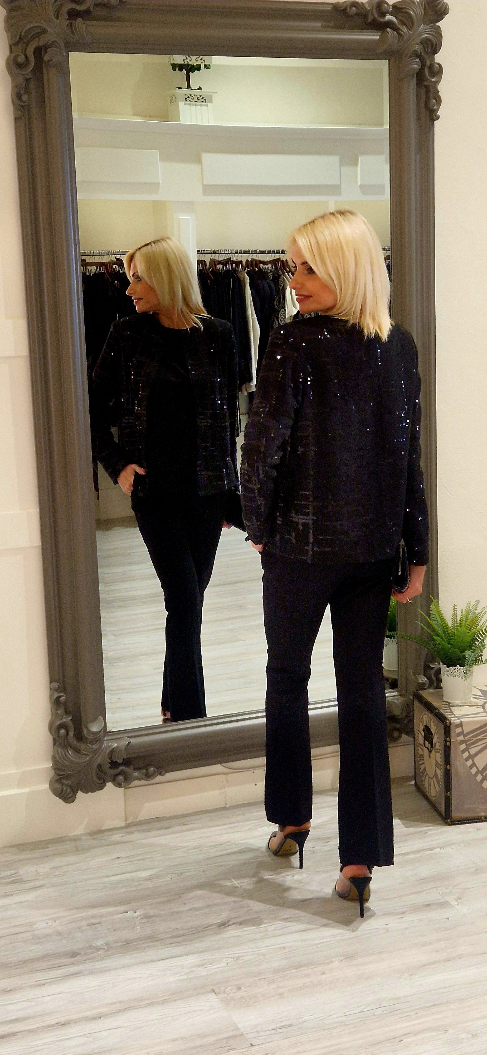 This Black Classic Top combines timeless style with subtle detailing. Crafted from a comfortable blend of 60% rayon, 35% nylon, and 5% spandex, it offers a flattering fit with long sleeves and a round neckline. Delicate slits on the sides enhance mobility and style, while elegant crystal embellishments on the shoulders add a refined touch. Easy to care for, it can be washed at 30 degrees, making it a versatile and sophisticated addition to your wardrobe. We have matching trousers and matching Jacket .