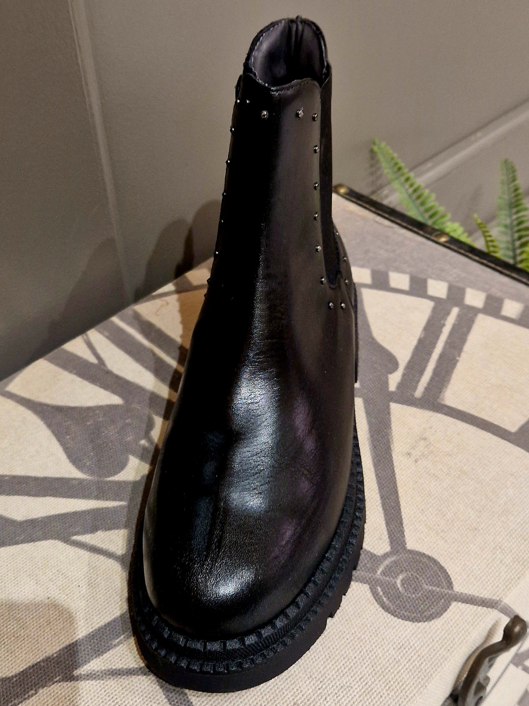 Crafted from premium full-grain leather, these black boots deliver timeless sophistication with exceptional durability. The structured silhouette transitions seamlessly from professional settings to casual occasions, while the quality construction ensures reliable comfort through extended wear. A versatile foundation piece that anchors any wardrobe with understated elegance and enduring style.