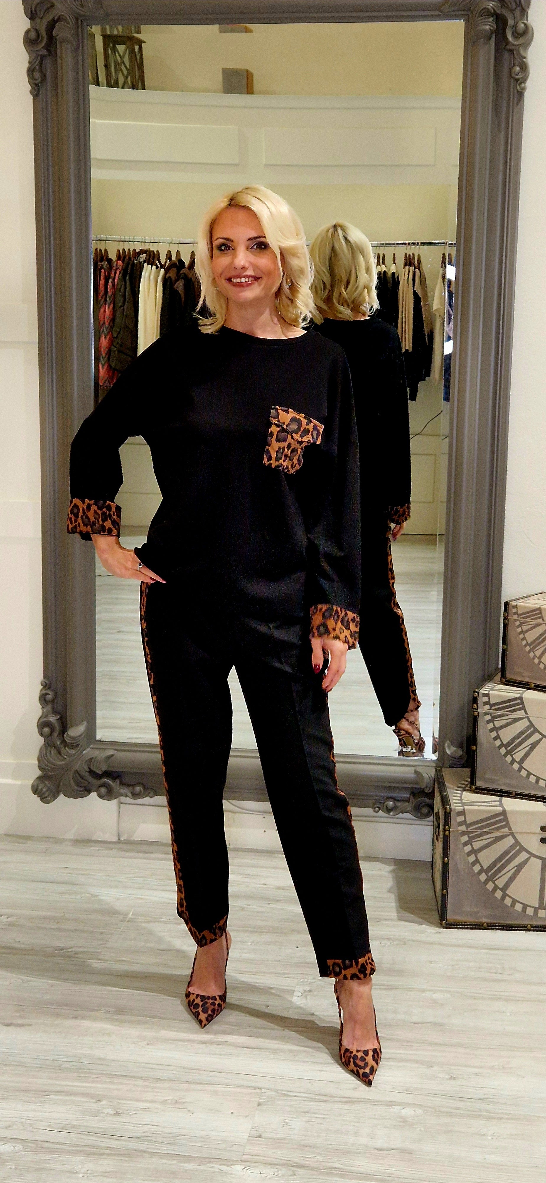 Black Leopard Seam Trousers