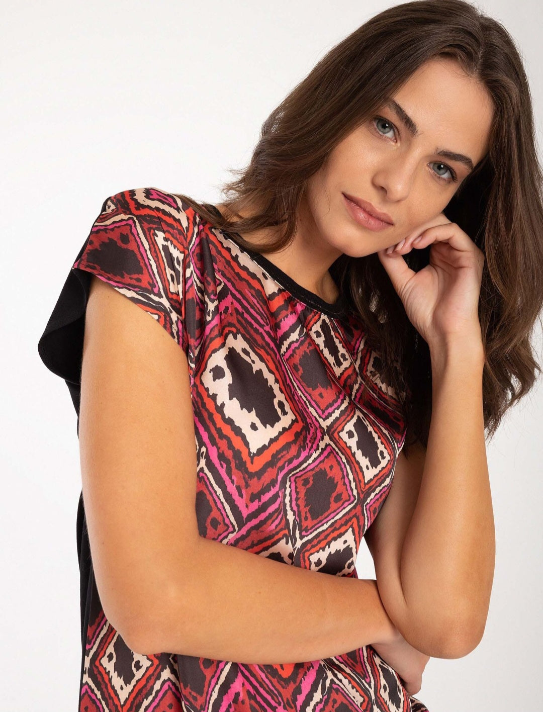- Lovely pink , orange, black and cream front print