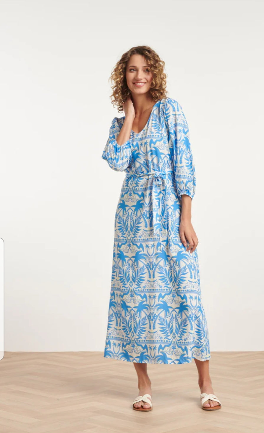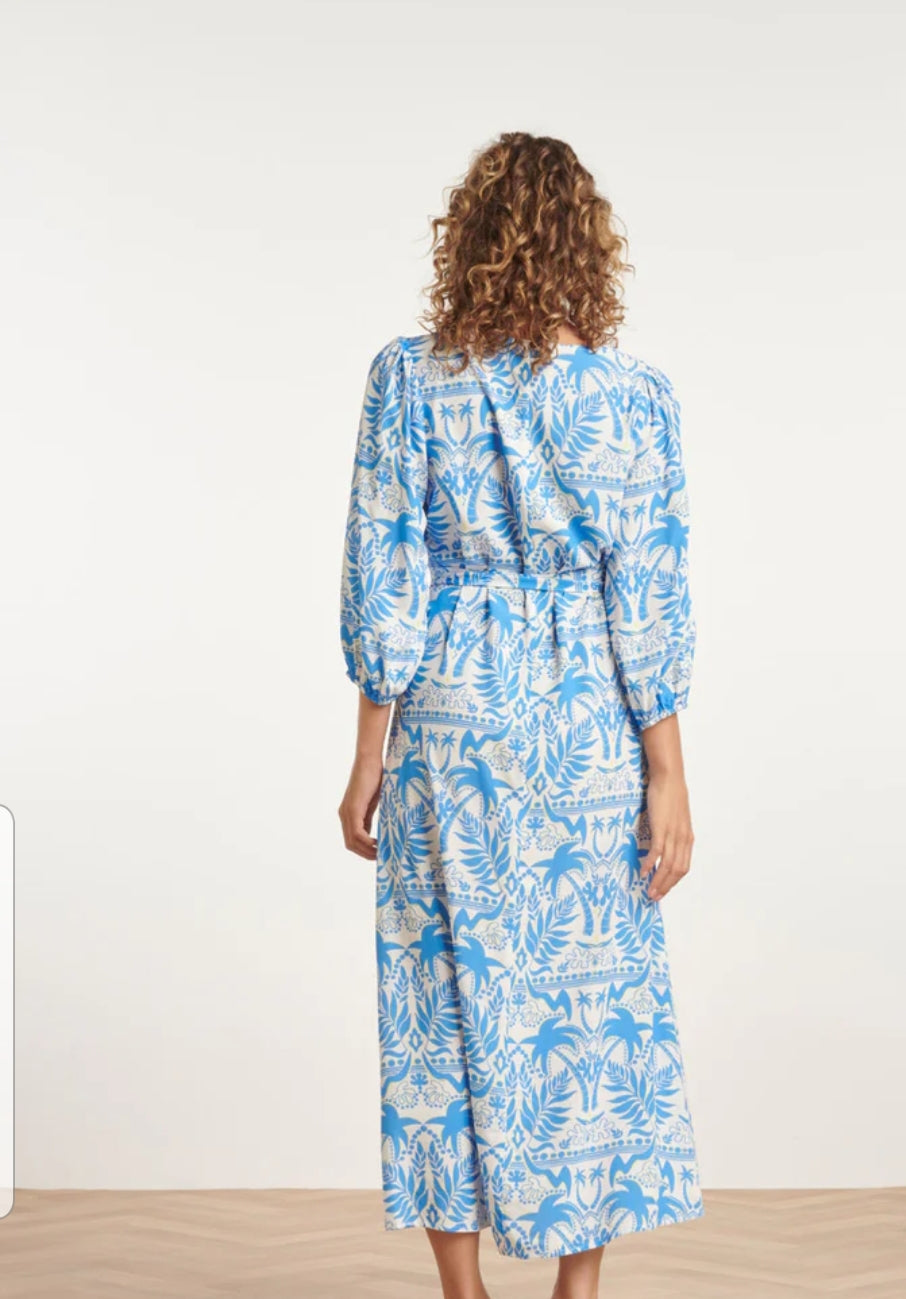 Expertly crafted, this Blue/ YellowMaxi Dress boasts a V-neck, 3/4 elastic sleeves, and a detachable belt for a flattering fit. Made from 100% rayon, it offers a comfortable and stylish option for any occasion. Simply machine wash at 30 degrees for easy maintenance.