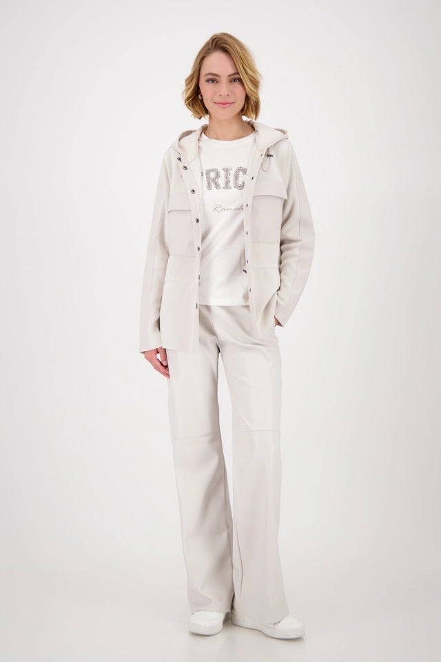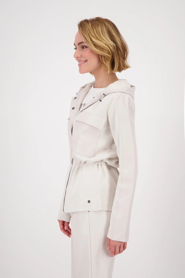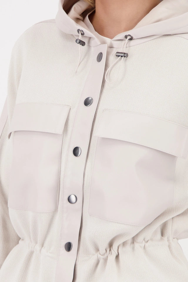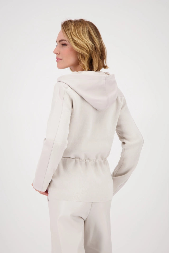 This stylish cardigan with a hood combines high-quality cotton, flowing viscose and an elegant leather look. Practical details such as the elasticated drawstring, flap pockets and button placket round off the feminine look.