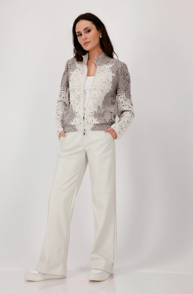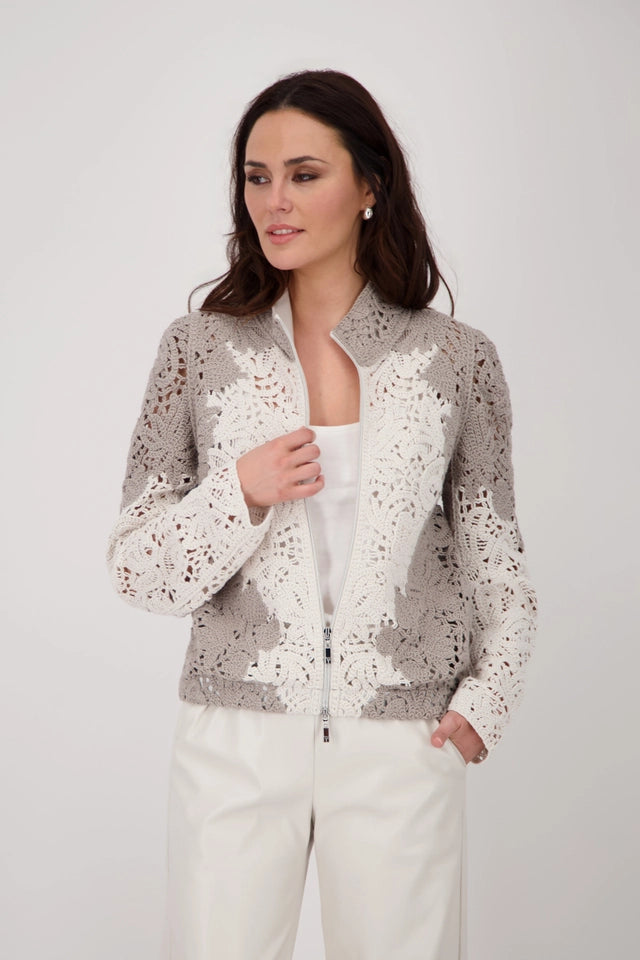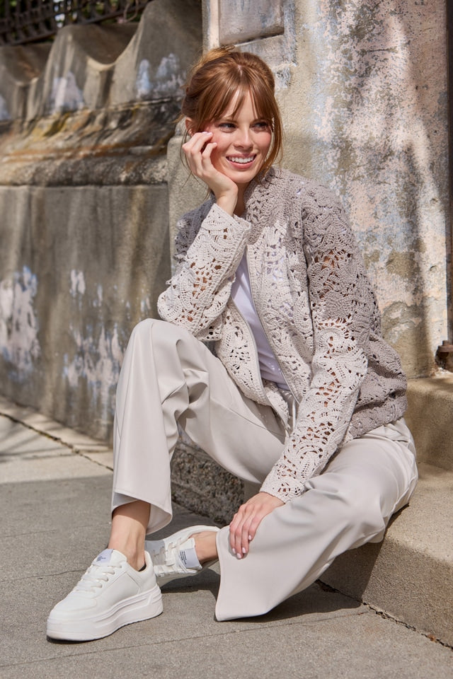 Crafted from a high-quality cotton blend, this cardigan features an intricate Cornelly crochet pattern that adds refined texture. Its slightly tailored fit and stand-up collar provide a structured yet comfortable silhouette, while long sleeves and a zip fastener ensure practicality and style. Designed for a polished look, the cardigan measures 54 cm in length for size 38, making it perfect for layering in both casual and formal settings. The model stands 1.77 m tall and wears size 36.