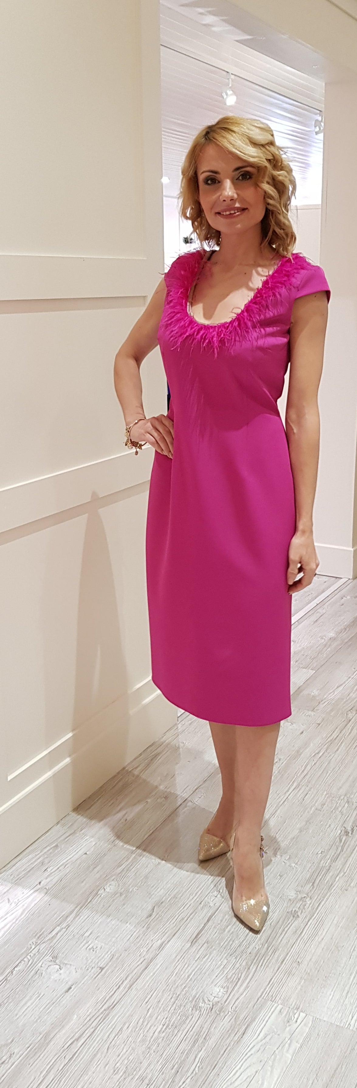 Cerise Dress With Feather Detail