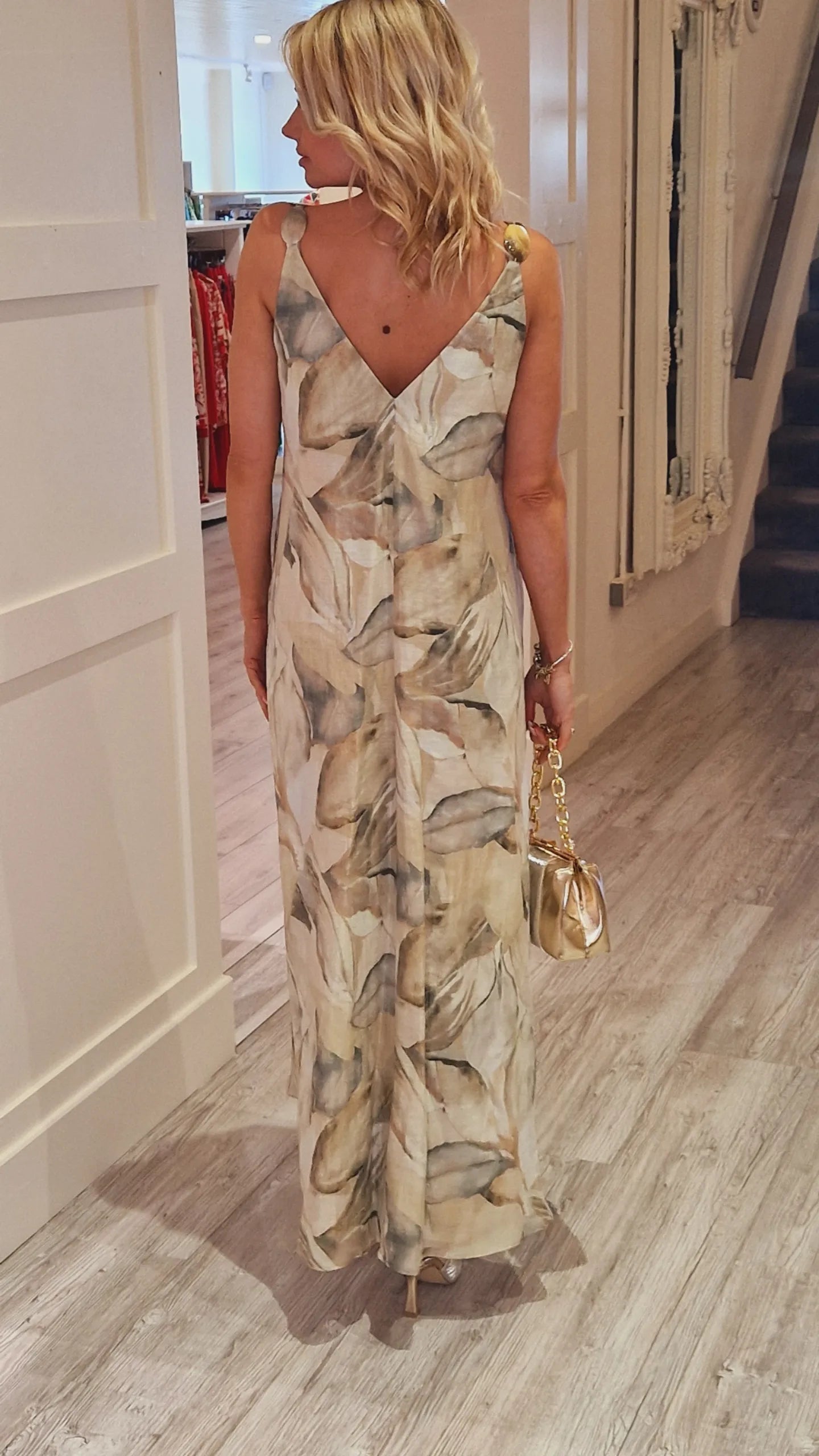 Expertly designed with a v-neck and flowy skirt, this Champagne Flower Midi Dress boasts a beautiful shell stripe and lined flower print. Its elegant style and unique features make it a must-have for any fashion-forward individual. Perfect for any occasion, this dress is sure to turn heads and make a statement.