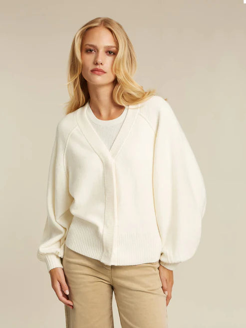 - Introducing our Knitted Soft Vintage Cardigan, crafted with raglan long sleeves for a comfortable fit. The blind snap button closure enhances the aesthetic while keeping it functional. Fully lined for a polished look. Complete the look with the delicate balloon sleeves and small cuffs.
