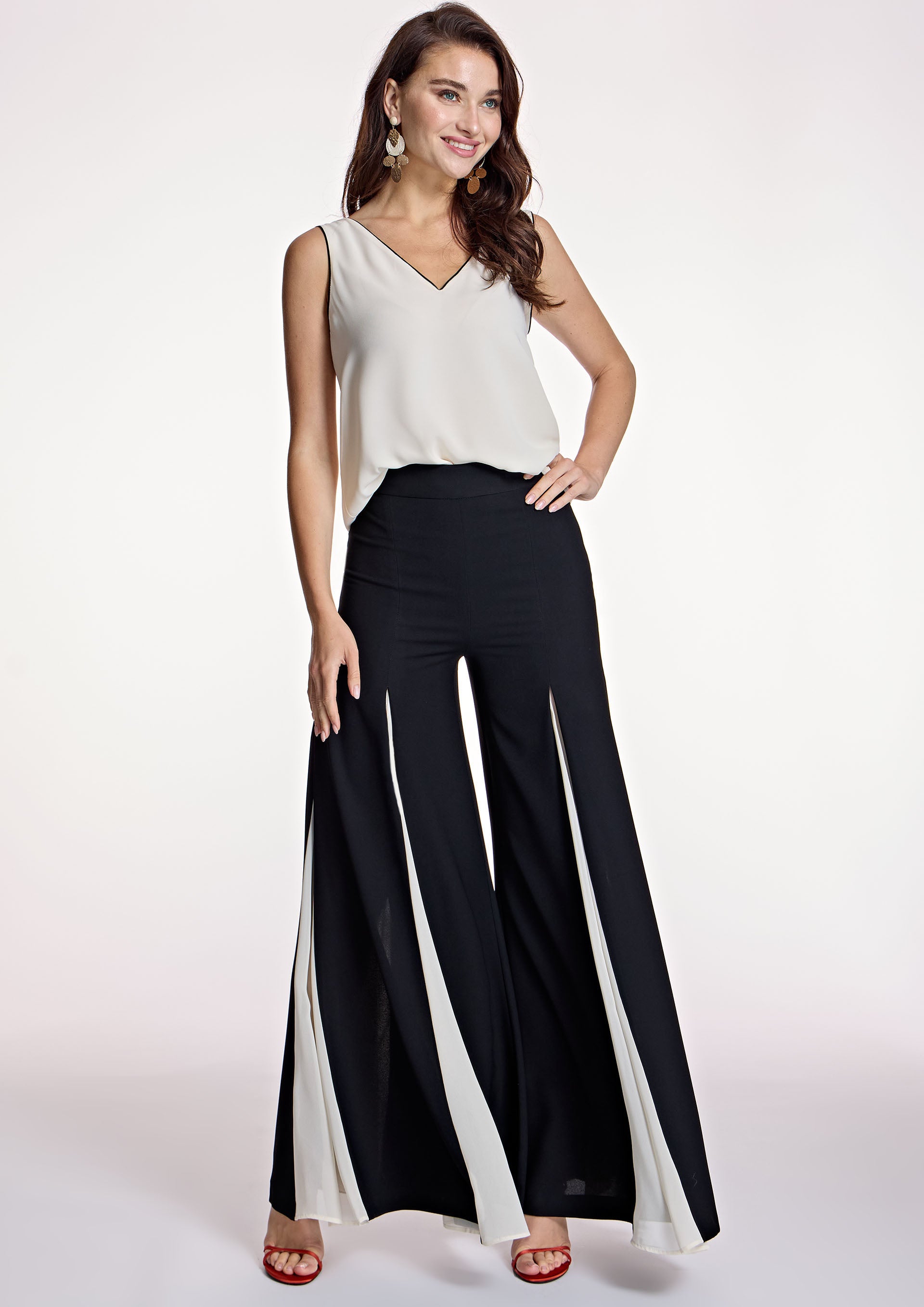 Introducing our Cream Sleeveless Top, the perfect addition to your professional wardrobe. This top features a sleek V-neck with black trim detail, a comfortable sleeveless design, and a loose fit for a flattering silhouette. Paired with our matching trousers and jacket, this top is perfect for any formal occasion.