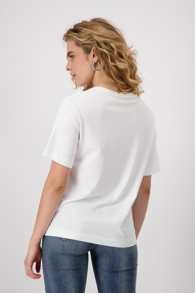 This cream top is made of a high-quality cotton-modal mix, providing both comfort and durability. It features a unique shoe and bag print adorned with rhinestones, adding a touch of glamour to any outfit. The regular fit, round neck, and short sleeve make it a versatile and stylish addition to any wardrobe.