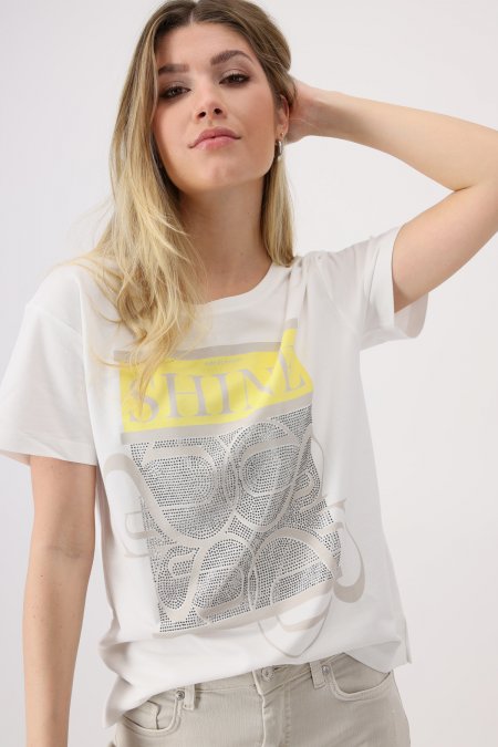 - The T-shirt made of high-quality cotton blend impresses with sparkling rhinestones and side slits.