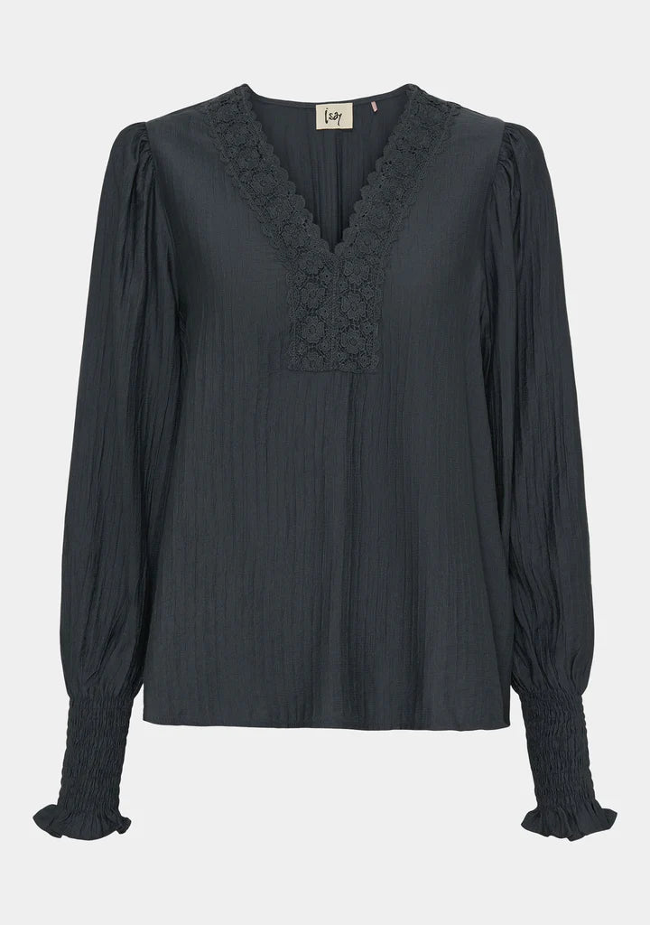 Dark Grey Top With Lace Detail
