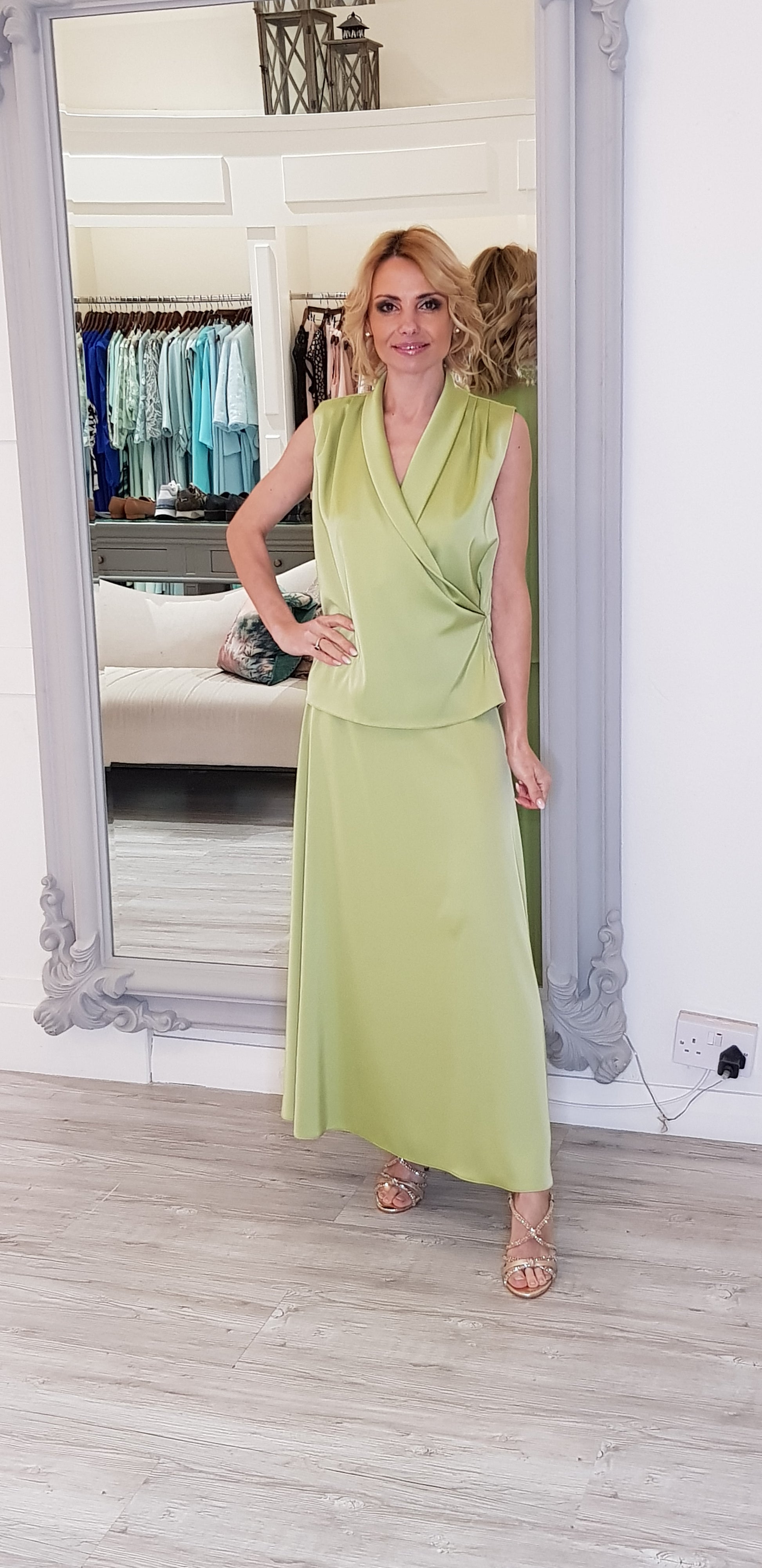 Effortlessly elegant, our Green Satin Look Sleeveless Top features a v-neck with wrap detail that flatters every figure. The ruche detail on the shoulder adds a touch of sophistication, while the lining ensures a comfortable fit. Team it with our matching skirt for a chic and coordinated look.