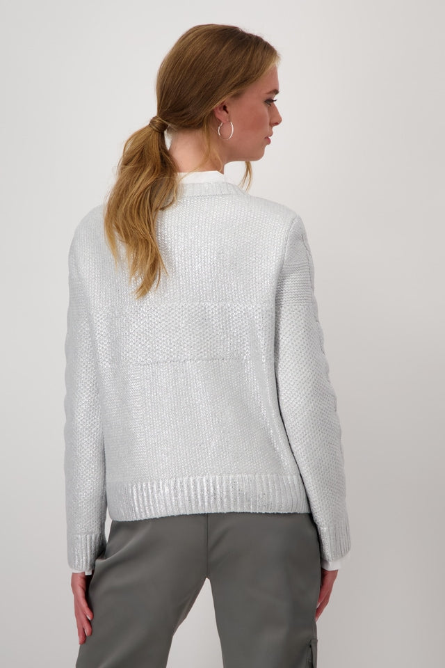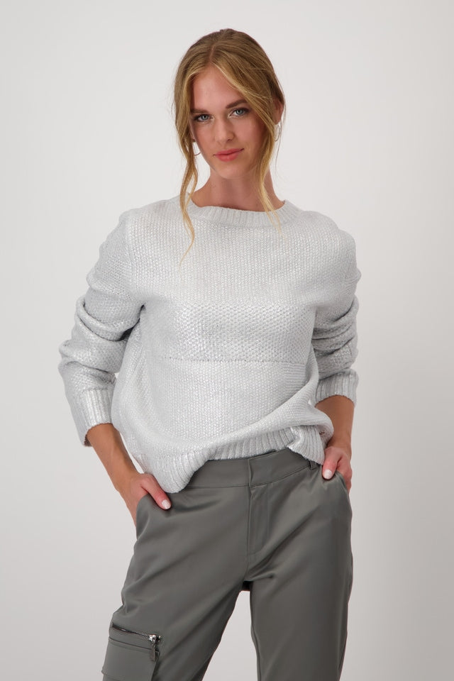 Expertly crafted from a high-quality cotton blend with an elastic material, this Grey Metallic Knit Jumper boasts a durable and comfortable fit. The unique paint coating and rice grain structure add a touch of texture, while the pattern mix adds visual interest. Finished with a ribbed crew neck, cuffs, and hem in a regular fit.