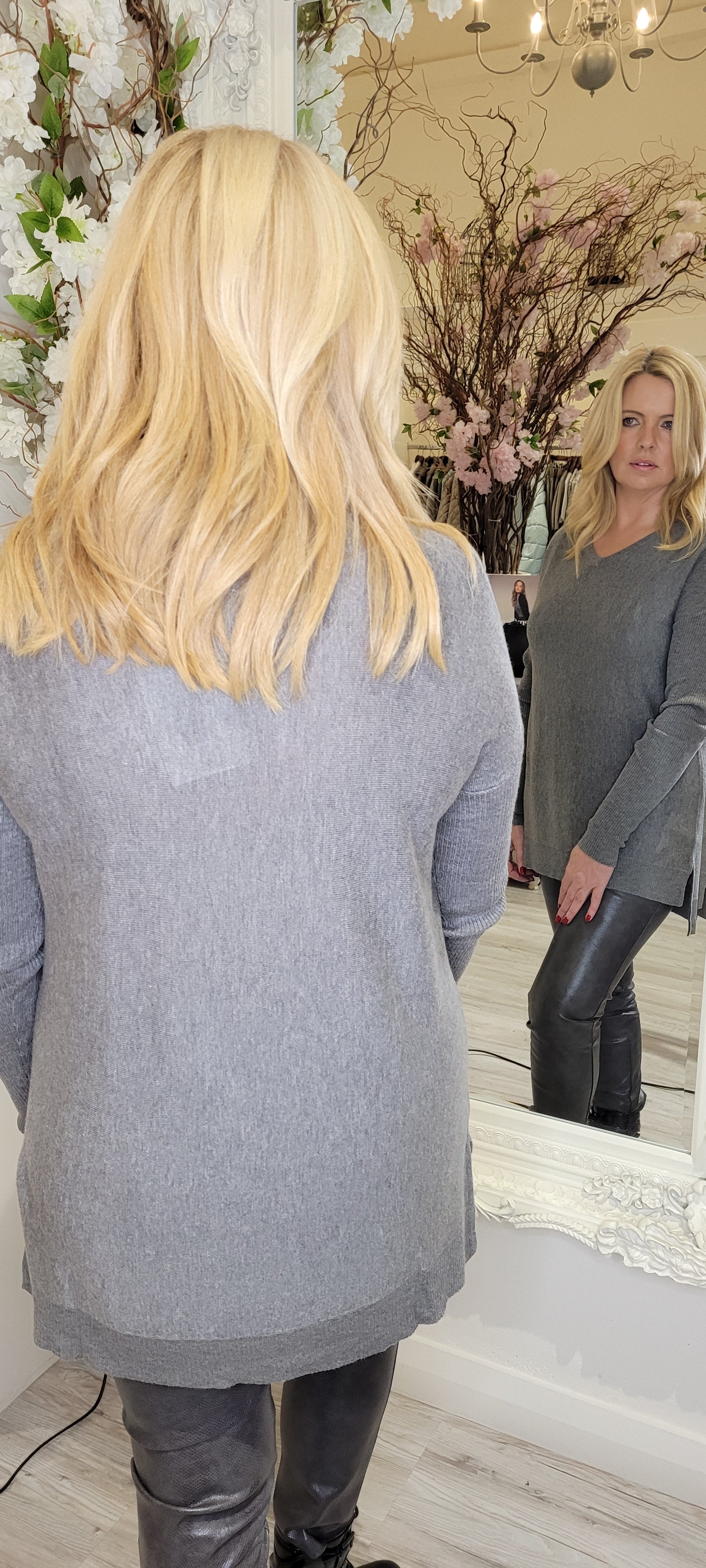 - V-Neck Jumper With Long Fitting Sleeves And Rib Trim