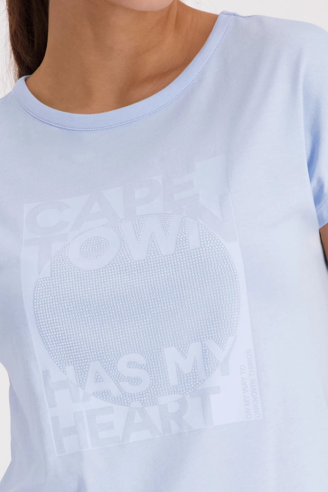 - This stylish T-shirt made from high-quality cotton with modal is adorned with rhinestones and features the poetic "Cape Town has my heart" inscription.