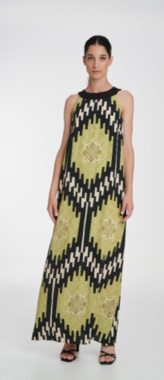 - Lime Green, Black And Cream Printed Maxi Dress