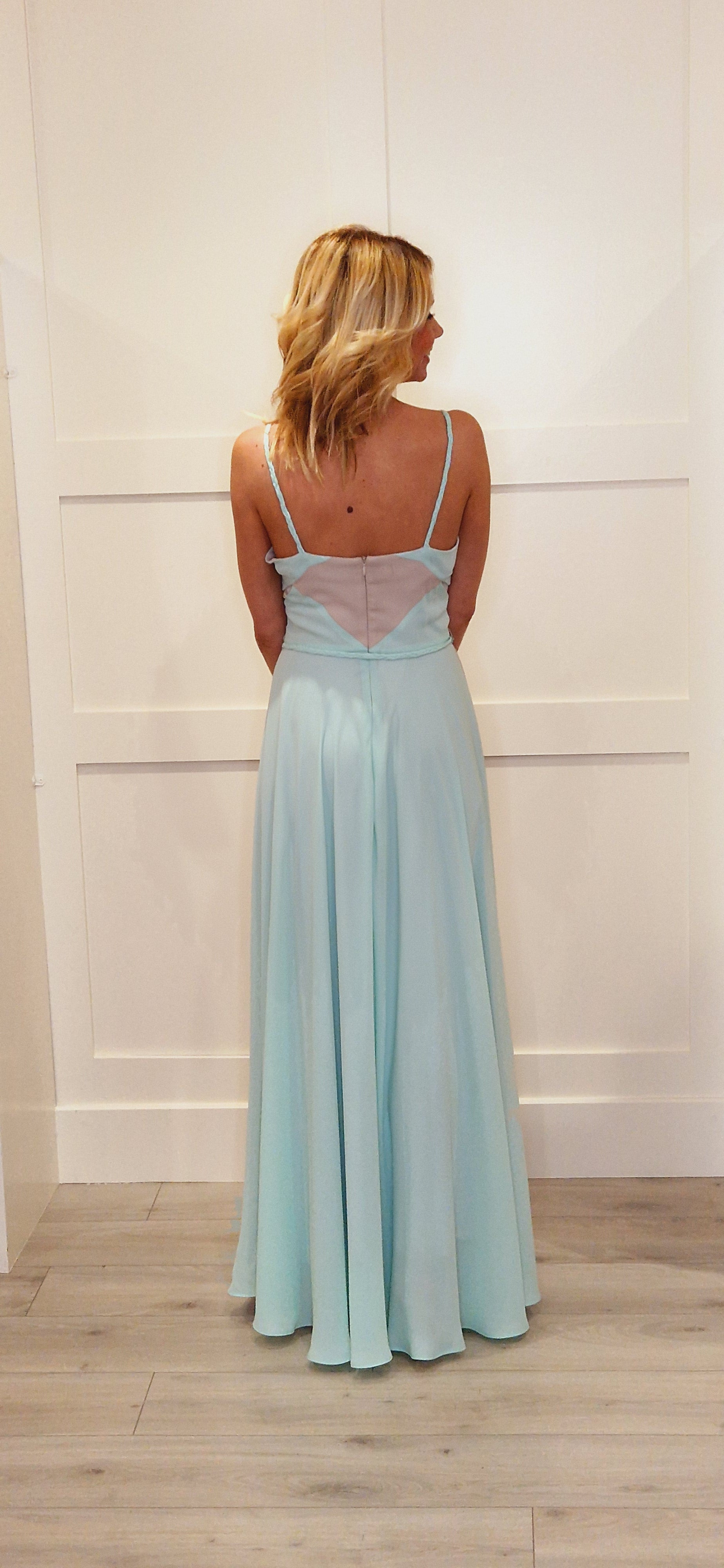 This mint and taupe dress, made of 100% polyester, features a sleeveless design and a detachable belt. With a delicate wash and zip closure on the back, this dress is a versatile and stylish addition to any wardrobe. Enjoy the comfort and elegance of this dress, perfect for any occasion.
