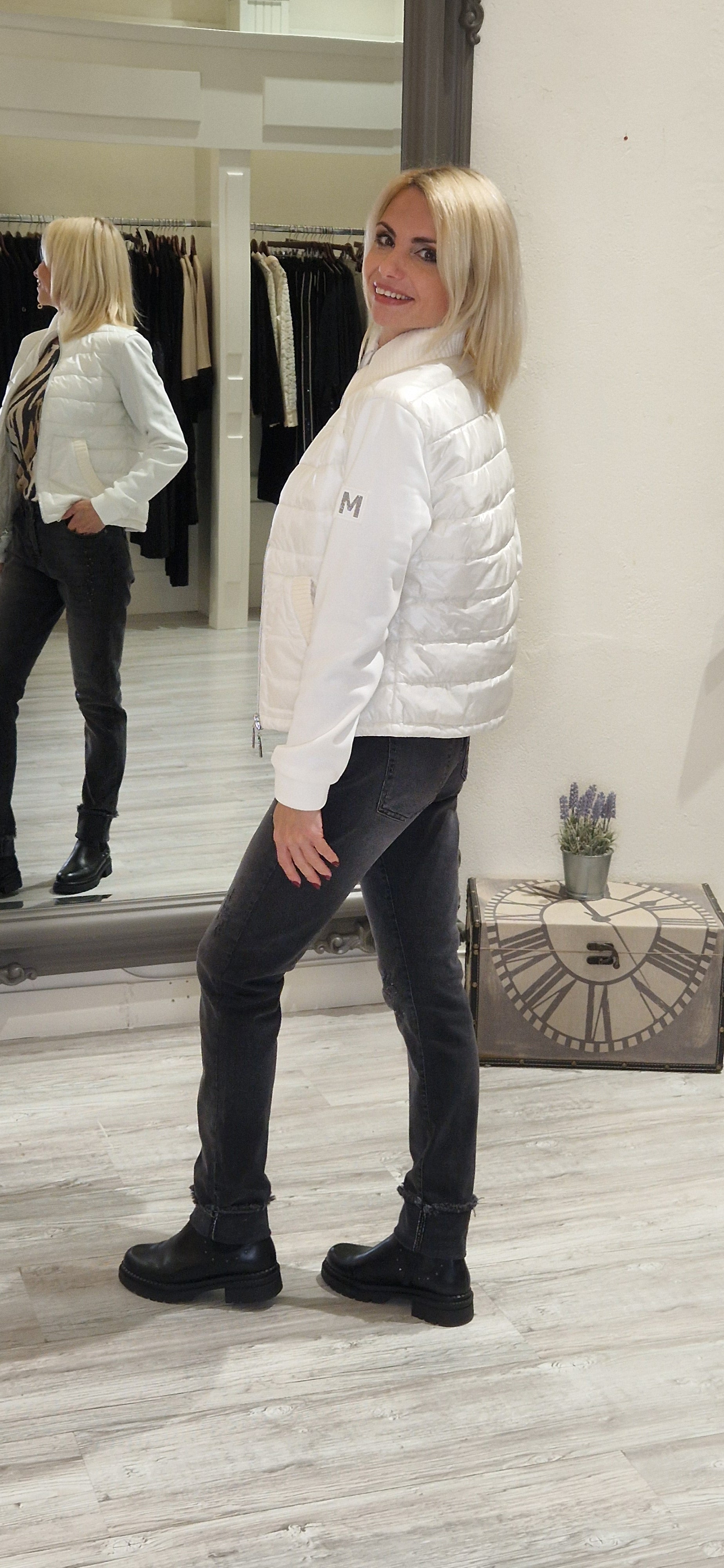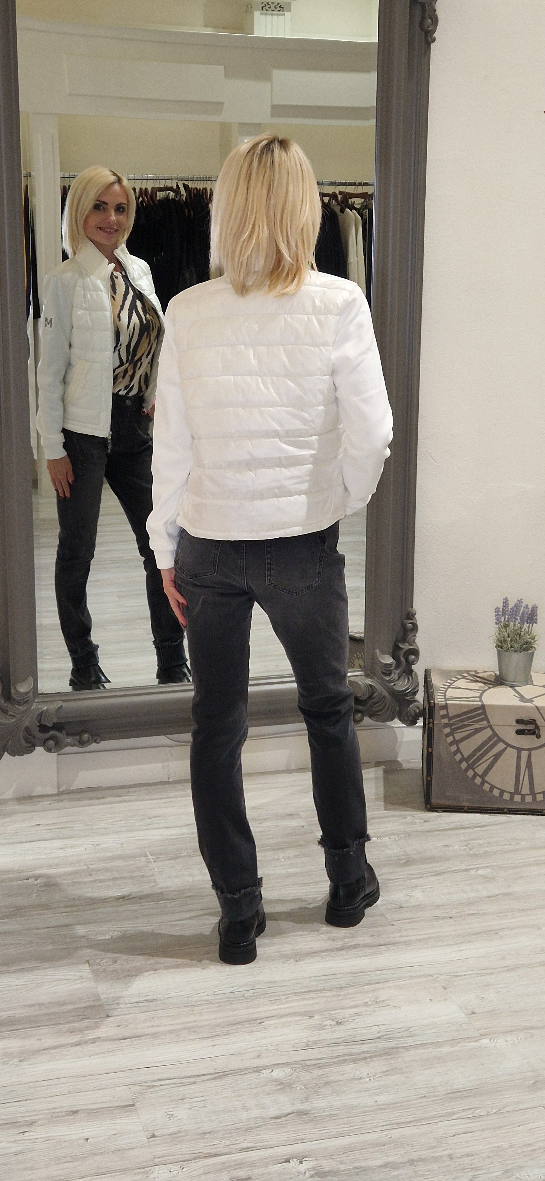 - Elegant quilted jacket with Lurex details and logo patch decorated with rhinestones – a chic accessory for any occasion.