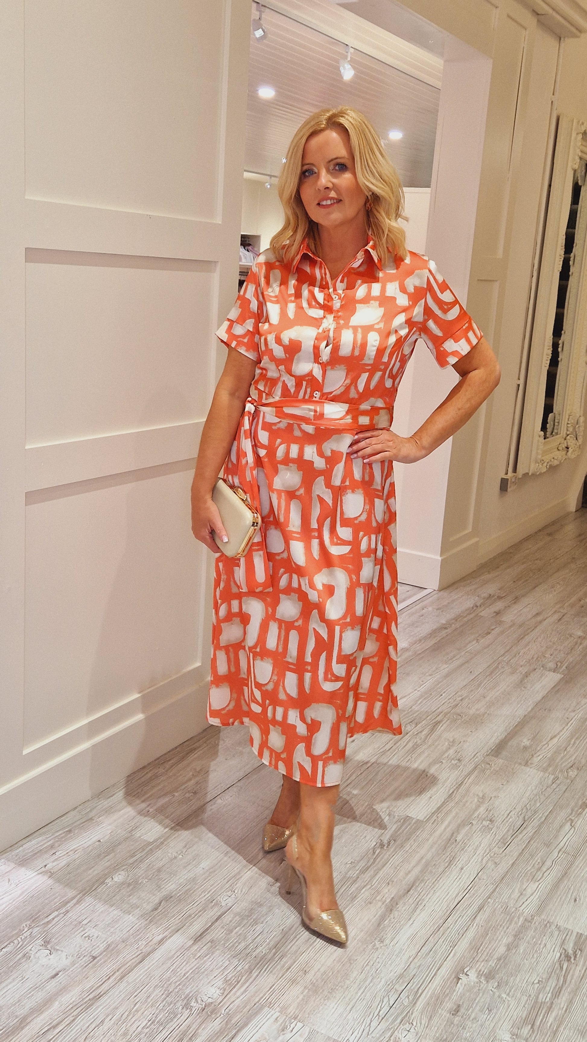 Orange/Cream Printed Dress