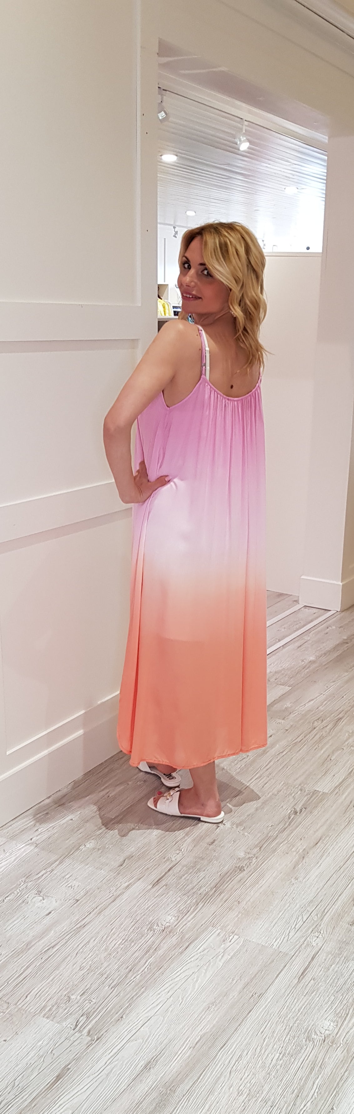 - Dress is the perfect beach dress. The dress has a beautiful design with spaghetti straps and draped details. Additionally, it has a loose oversize fit, creating a beautiful and simple silhouette. Wear the dress to work, to the beach, to a party – and for any other imaginable occasion.
