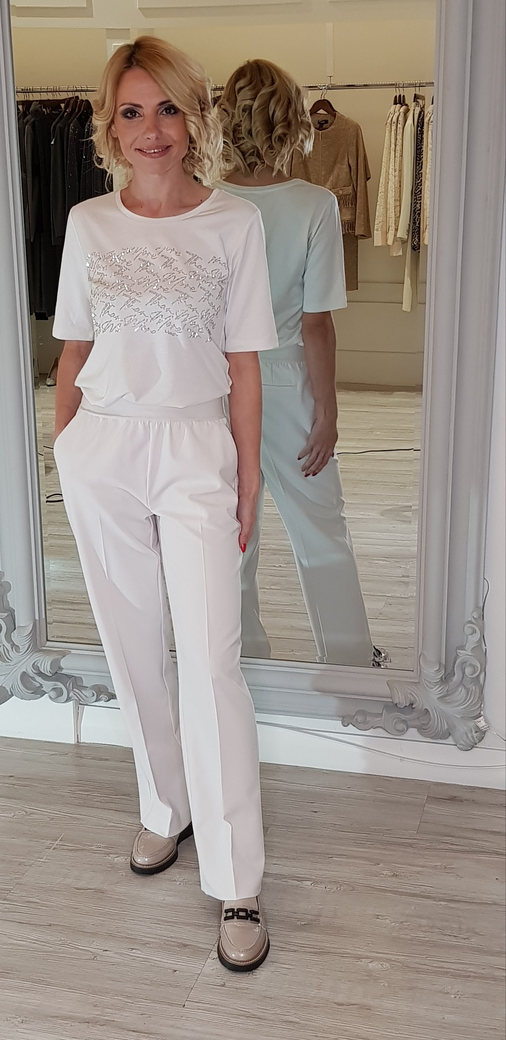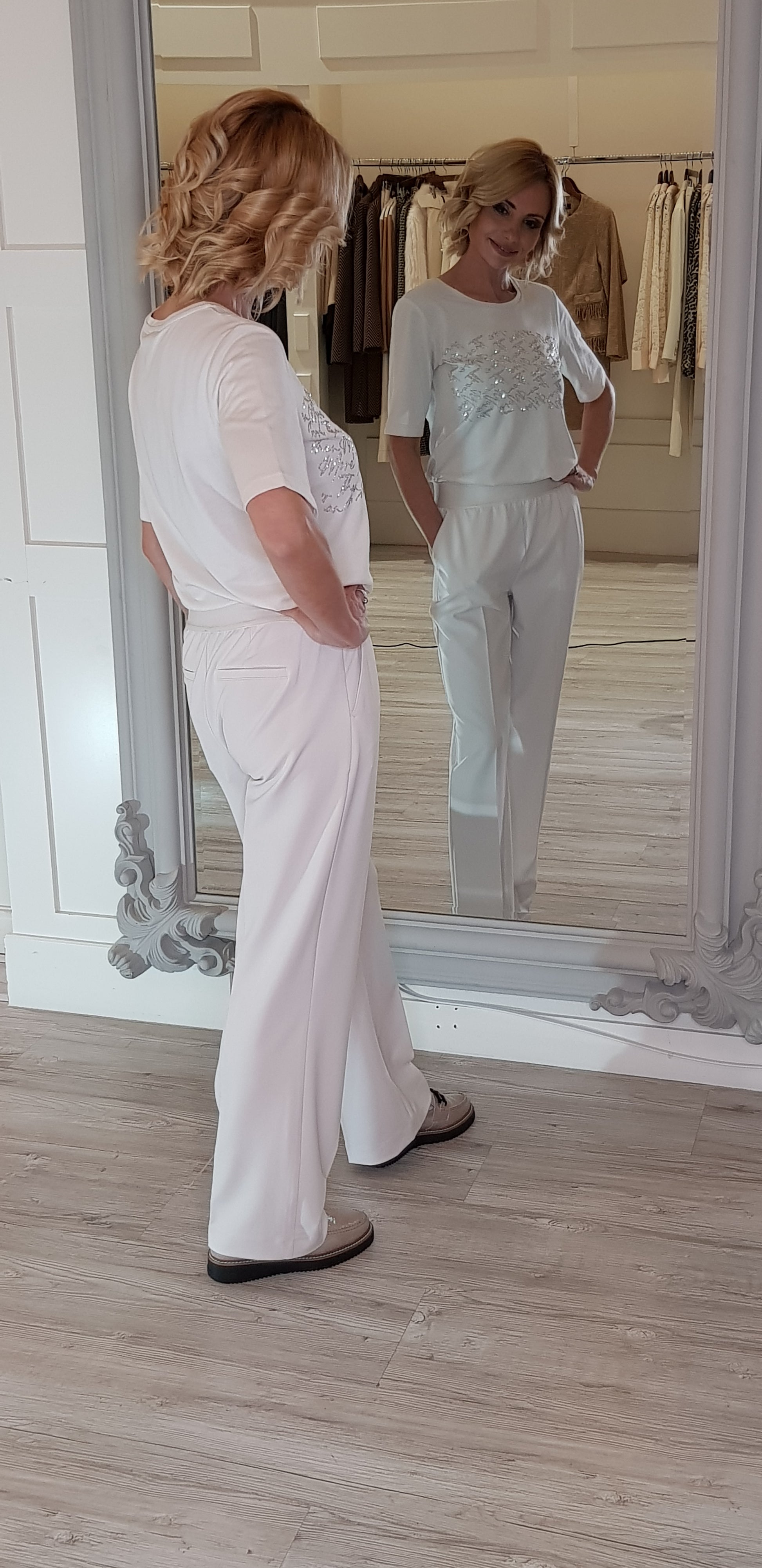 This elegant sand top boasts a round neck and 3/4 sleeve for a sophisticated look. The lovely sparkly pattern on the front adds a touch of glamour to any outfit. Pair it with our matching jackets for a complete and stylish ensemble.