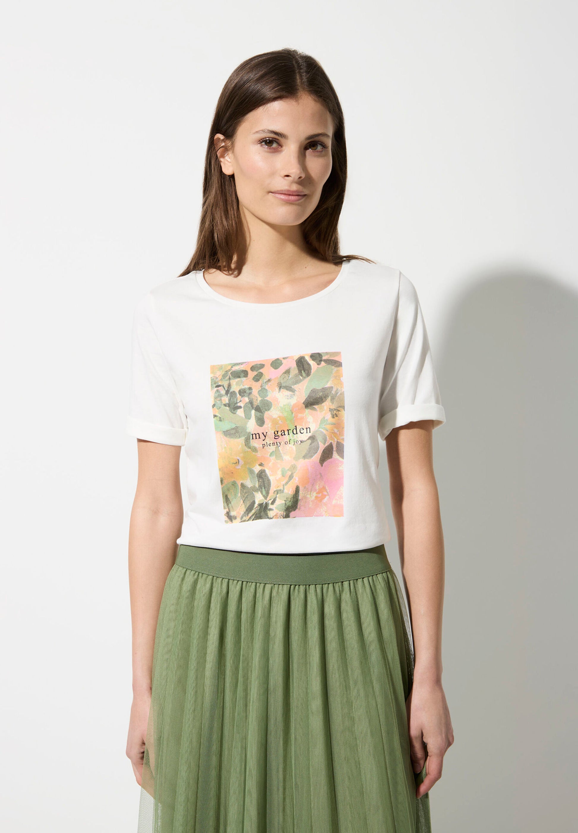 The attractive short-sleeved shirt with a colorful floral print on the front exudes pure summer vibes and can be combined in many different ways.
