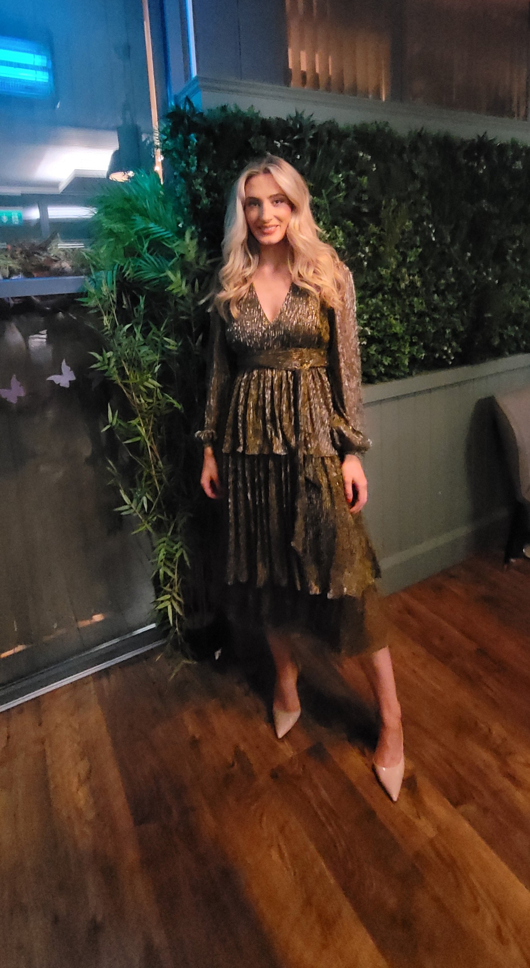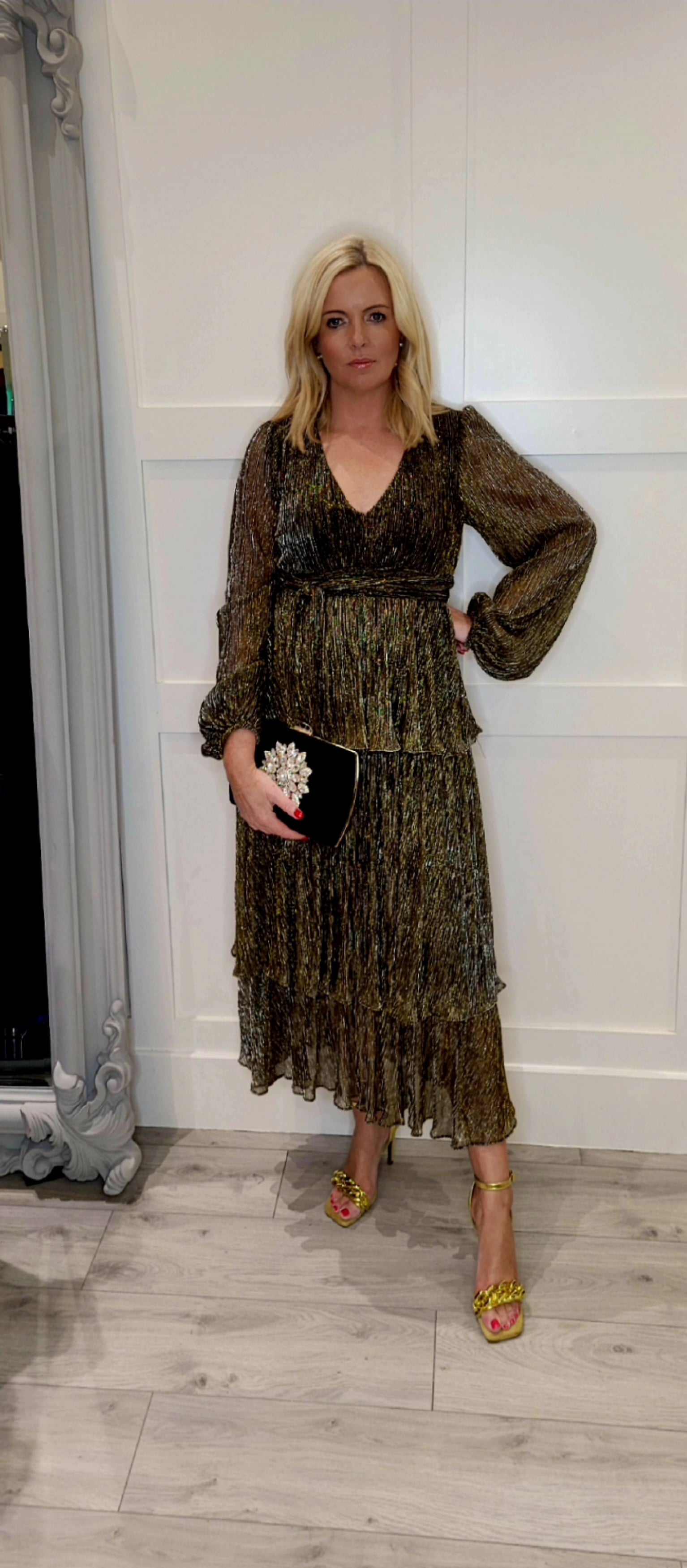 The Nerve Gold Shimmer layer Midi Dress
