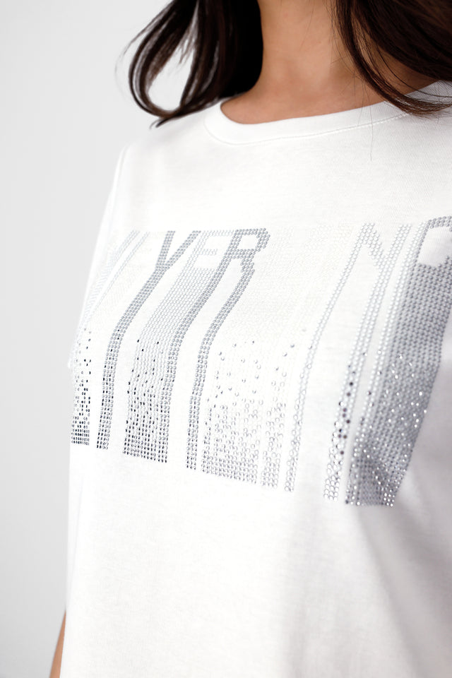 - The 100% cotton T-shirt is a real eye-catcher thanks to the sparkling rhinestones on the ribbed structure.