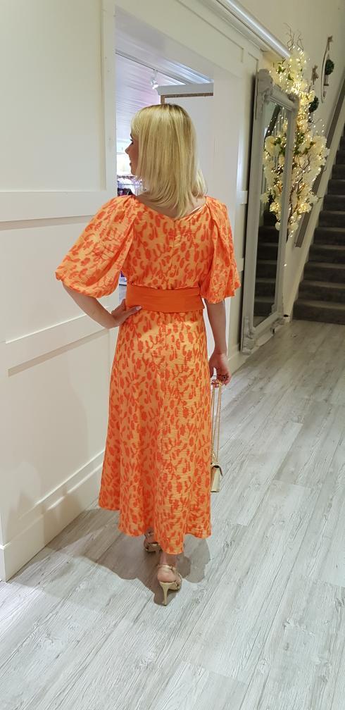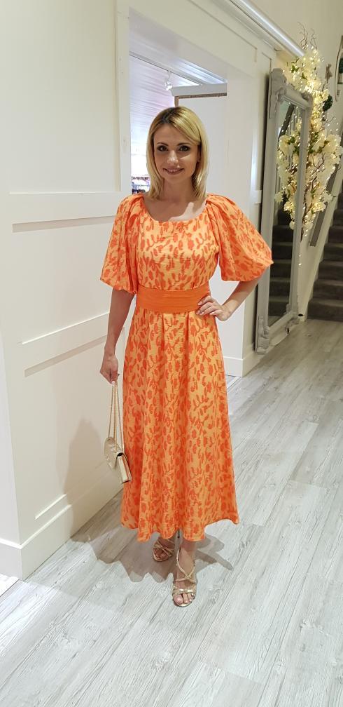 This elegant and stylish Two Tones Orange Midi Dress features a round neck, cup sleeves, and a detachable belt for a flattering fit. The dress closes with a zip on the back and is fully lined, providing both comfort and quality. Made of 100% polyester, it is also easy to care for with delicate washing. Perfect for any occasion, this dress is a must-have for any fashion-forward wardrobe.